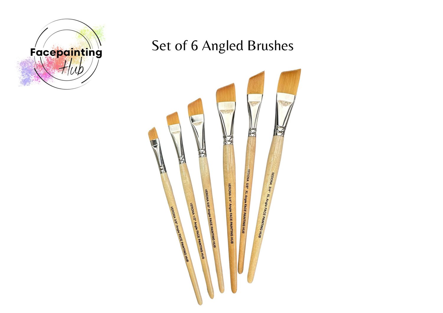 Set of 6 Facepainting Hub Verona & Sedona Angled Brushes