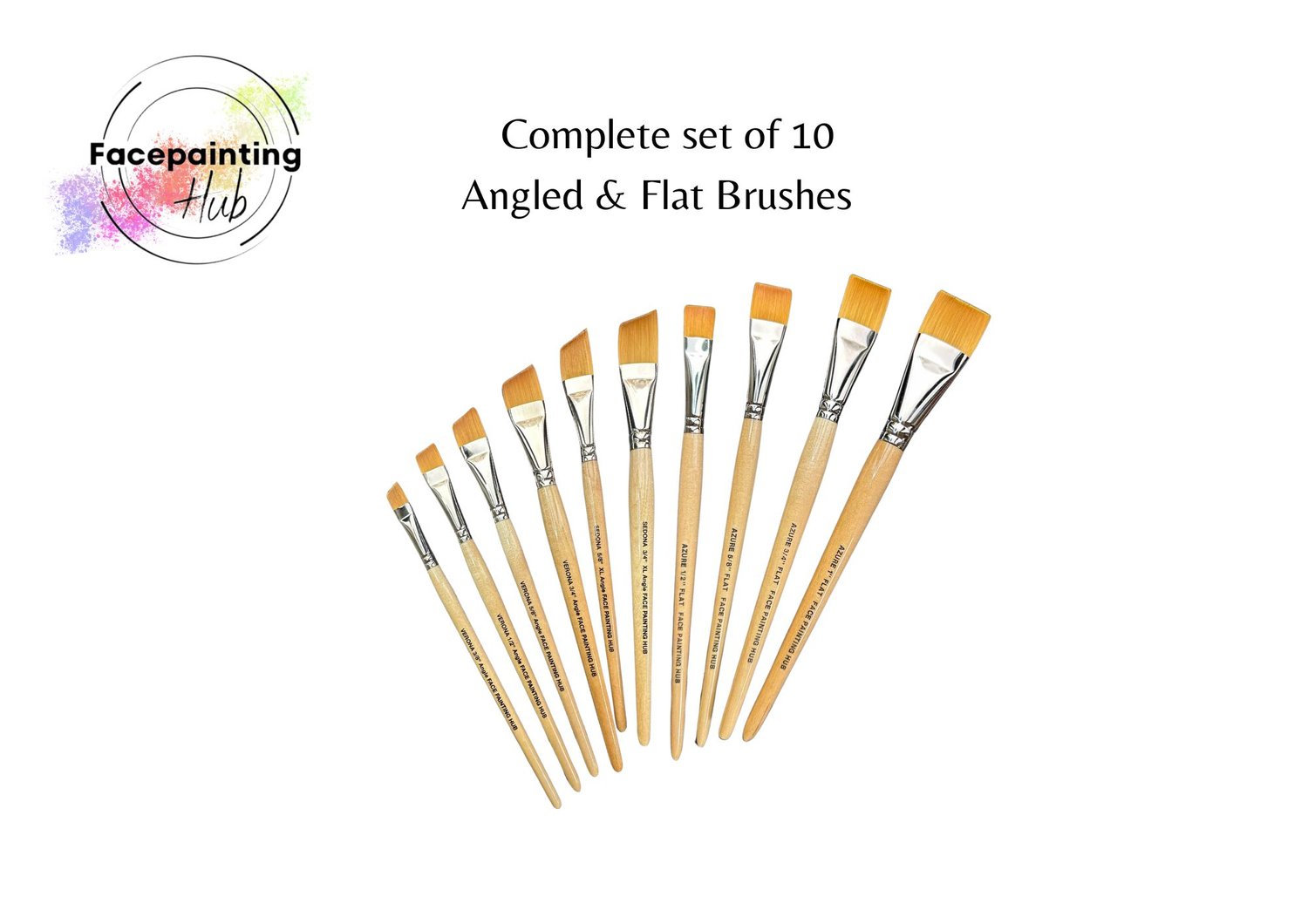 This set includes all 10 Facepainting Hub angled & flat brushes.